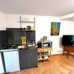 Hosté mohou využít mikrovlnné trouby a toustovače. Tento apartmán o rozloze 28 m^2 se nachází 5 km od letiště Hyeres.